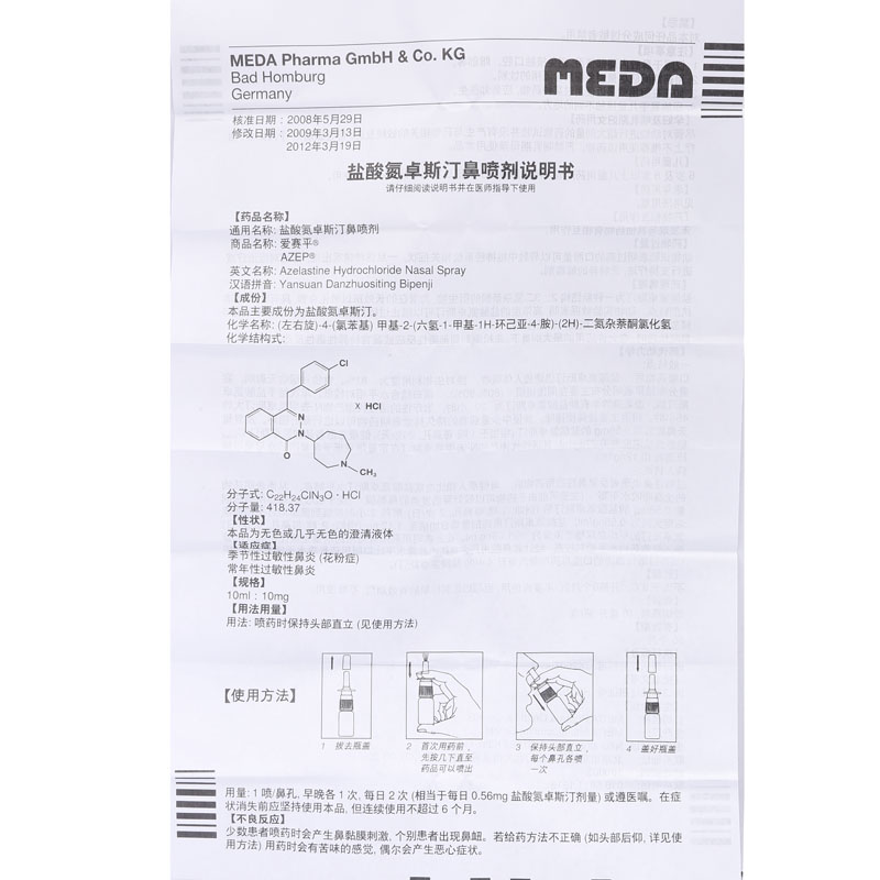 爱赛平盐酸氮卓斯汀鼻喷剂