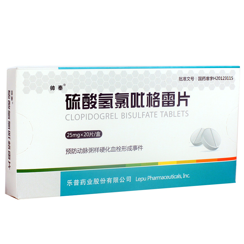 帅泰 硫酸氢氯吡格雷片 25mg*20片/盒