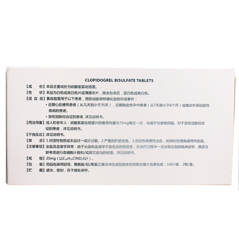 首页>全部商品>专科用药>心脑血管>冠心病>帅泰 硫酸氢氯吡格雷片 25mg*20片/盒